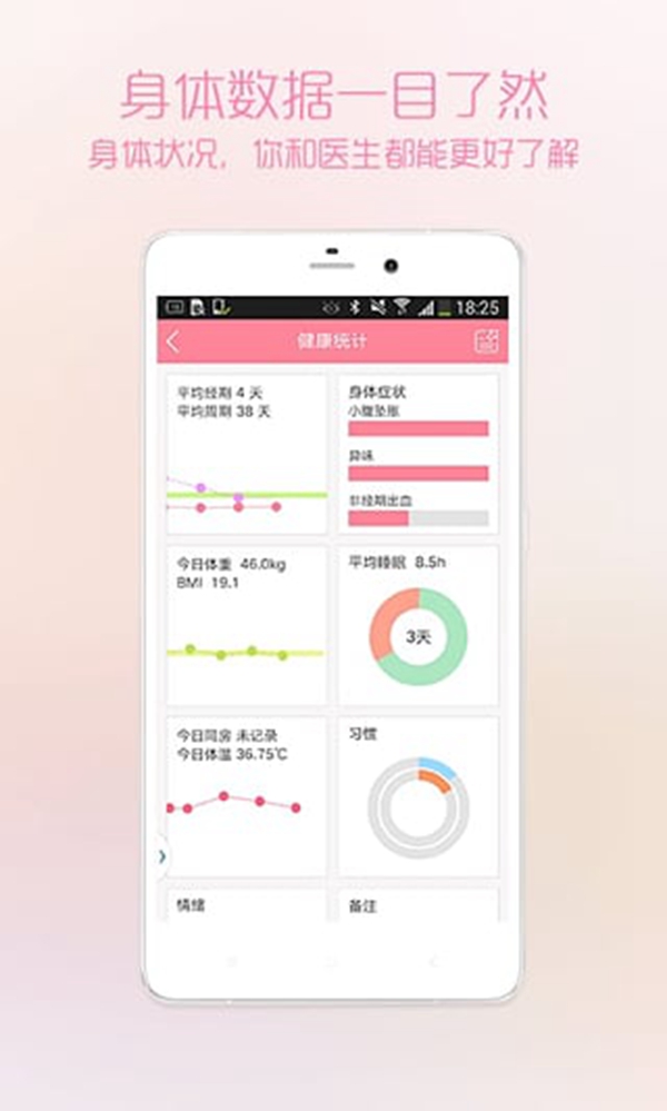实时监控用户生理周期的变化,如体温、饮食、运动等多项指标。