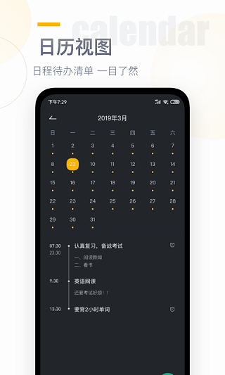 1、可用于日常工作、学习、休息等多场景中的日程事项展示及重要事件处理需求。