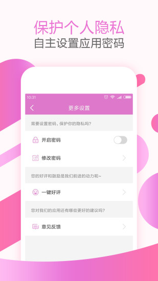 3.【个性定制】为你量身准备专属的经期提醒功能,让您不再错过每一个重要的日子哦