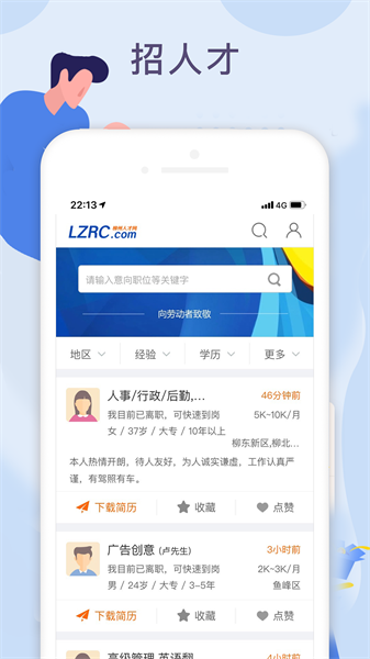 柳县招聘网是一款专注于柳州市柳市的人才招工和企业招聘信息发布、网络招聘平台。柳州招聘网致力于帮助求职者快速了解柳州市内最新招聘政策及热门职位情况,提供简历投递管理功能以及实时更新附近工作机会等便捷的功能操作方式哦!