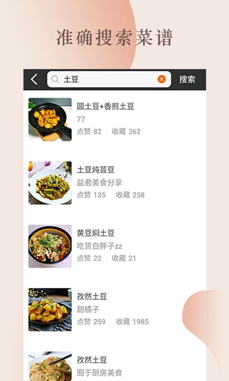 2、【搜索直达】:输入关键词就能帮您找到想要的菜谱。