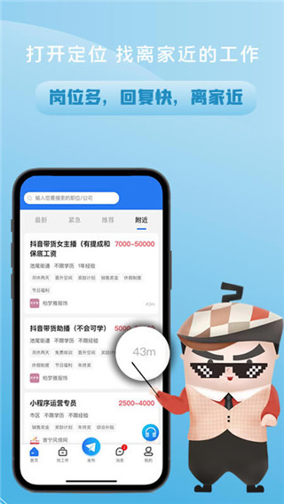 智能筛选功能:支持按照职业要求快速定位附近的工作或兼职订单,大大缩短了寻找工作的时间和精力。