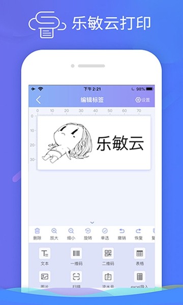 Minyun)是由厦门乐析电子科技有限公司推出的便携式标签编辑打印软件 乐敏云打印app是一款便携式打印机软件,用户可以通过手机直接在线编辑各种内容的文件、图片以及PDF文档等格式的内容。通过这款软件能够实现非常便利化的办公功能使用起来更加方便!喜欢的朋友可以下载试一试哦!