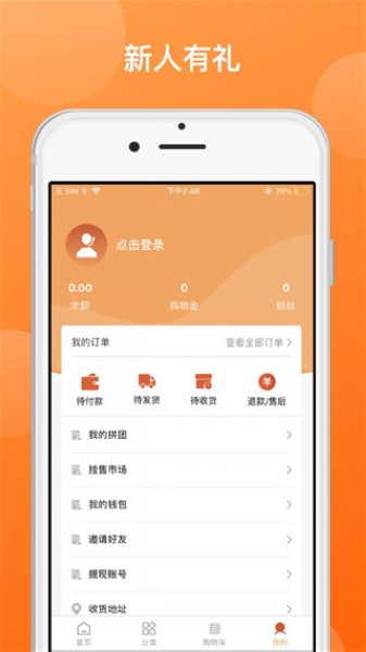 4、“我的”模块则包含我的消息、收货地址、个人资料、关注好友、评论留言等多个项数据查询按钮。“我的”界面也包括登录密码修改、关于我们、意见反馈等选项。
