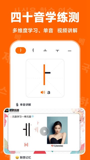 (1)初学者进阶学习韩语音标,标准发音及流利韩语口型讲解,更有单元音频教学,循序渐进地掌握韩语基础。