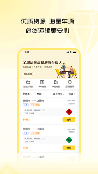 危司机平台是为危运司机打造的物流软件,在这里你可以进行货运服务操作。可以查看最新的货物信息和运输订单详情等内容!同时还可以随时了解最新动态哦!