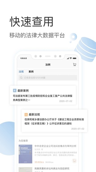 【有章阅读app】是全国唯一一所综合法律出版社,具有国家知识产权保护三级证书的专业法律信息服务平台,