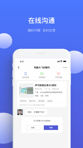 内置即时通讯工具,方便医生与其他患者进行沟通交流。