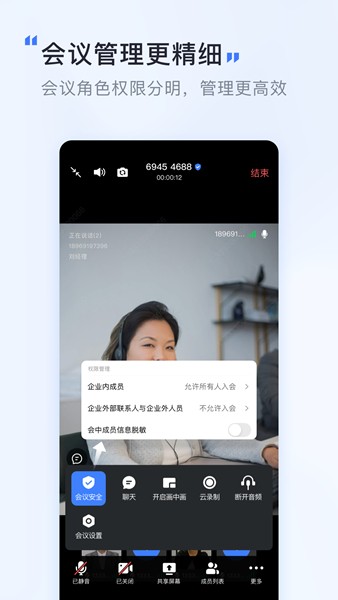 主持人有序管理会议,主持人美颜和背景虚化,保证会场秩序