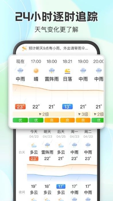 即时更新当日温度变化,包括降水概率和湿度,确保用户可以第一时间做好出行准备。