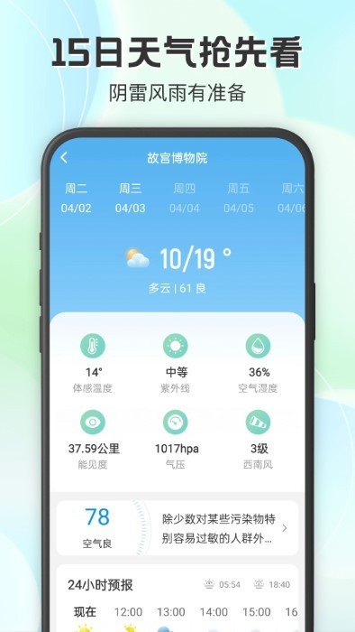 这是一款精准预测天气的应用程序,旨在帮助用户更好地掌握天气趋势,做出明智决策。它集成了丰富的天气预报资源与便捷的使用体验,为用户带来更加贴心的天气预报服务。