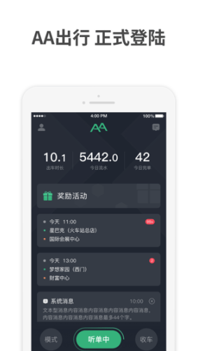 aAA出行司机端是ABB司机端,专为网约车车主用户推出。软件拥有实时定位服务、预约订单查询等功能,能够帮助出租车师傅更轻松接单赚钱工作。有需要的用户赶快来下载吧!