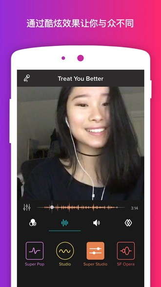 -编辑你的歌声:通过简单的拖拽操作实现歌曲的编辑变音,包括添加滤镜、旋律、翻转等。