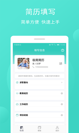 极简简历模板免费使用简历制作软件,这是一款非常实用的求职招聘app。在极简简历模板中用户可以自由设置自己的简历样式、颜色和排版方式等信息哦,有需要的朋友快来下载体验吧!