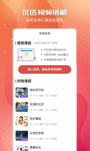 针对中学生而开发的学习工具,包括了初中政治学习所有章节的内容和重点知识点讲解视频、课后练习题目等资源,包含全国大部分省市几百套中考政治题型以及答案解析,同时提供了初中政治专题精讲,有详细的视频课程解说与教材同步的功能模块服务,是广大初中生提分必备神器!