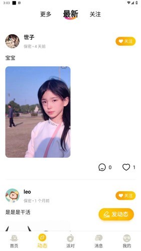 【动态广场】展示自己,展现自己,邂逅心动的Ta。