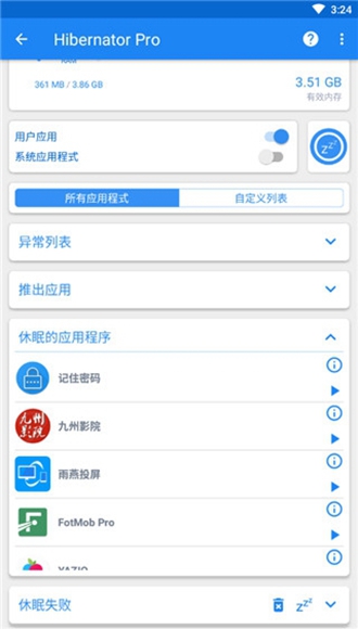 Hibernator是一款非常受欢迎的安卓进程管理工具,它可以让你在手机上快速地完成手机的运行任务。通过这款软件你可以轻松访问各种应用程序和游戏数据并进行安装操作。这款软件界面设计简单明了,使用起来十分方便。此外,Hi了吗?hierps是专为Android设备打造的系统优化工具。你可以在这里找到许多实用功能供你尝试;并且还可以帮助你更快地获取最新的系统信息!