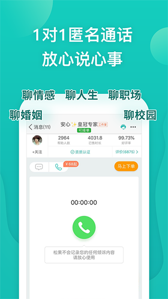 3、【便捷】无需预约,随时随地,一键拨打倾听者电话,快速了解您的烦扰;