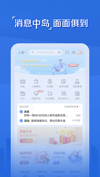 浦大喜奔信用卡用户们打造的app是浦发银行信用卡客户们建设版,浦发银行信用卡还款、积分商城等等功能都支持在手机上进行操作。浦大喜跑信用卡官方手机客户端为浦发的银行信用卡会员提供便捷服务和生活优惠信息查询等业务办理入口。