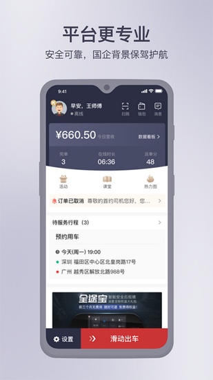 首创“互联网+”新零售模式的网订式出行解决方案。平台采用创新科技赋能,通过智能调度、智能派单、数据分析等技术手段,为网约车司机创造更加公平、便捷、高效的移动出行体验。