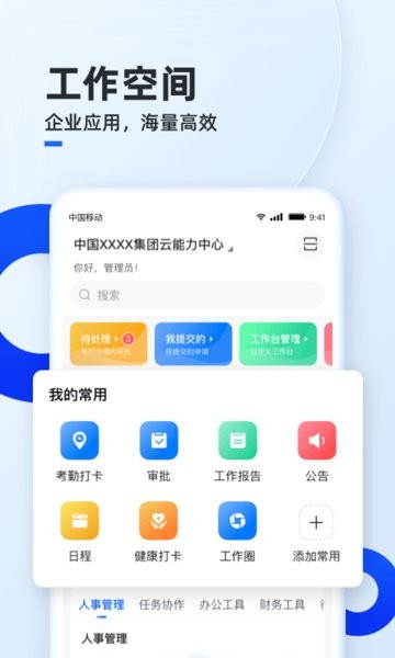 移动云空间手机app中国移动企业用户量身定制应用程序是一款面向移动企业用户的专属个性化服务软件,移动云空间手机app中国移动企业用户量身定制应用程序提供全面的业务办理功能、便捷的数据查询和即时通讯工具等。移动云空间手机app中国移动企业的用户量身定制的应用程序让客户可以随时随地享受到高效而优质的办公生活体验。