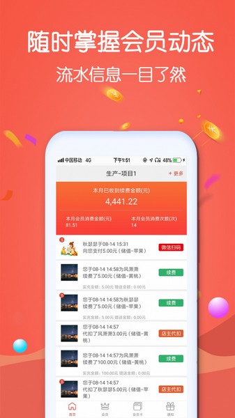 招客宝APP提供商户、会员管理系统和客户关系系统等功能模块;以移动互联网技术为支撑,实现企业经营数据分析及销售过程追踪与执行任务跟踪平台,让商户可随时随地了解自己商品的销售动态情况,并及时调整促销策略,降低销售风险。
