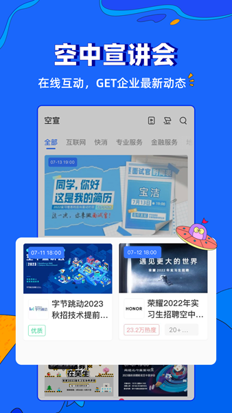 1.【职位推荐】精准匹配,智能推荐符合你喜好的职位。【企业屏蔽】简历被屏掉,求职体验更舒适。【面试邀请】看中企业直接沟通,offer更优选择。【附近职位】查看身边的高薪工作好工作。【校招动态】掌握学校最新招生情况。【个人中心】管理自己的简历和申请记录。【行业分析】专业团队为你提供职场分析报告。【聊天找老板】实时互动畅聊。【人才社区】分享你的经验,寻找合适的员工。【功能介绍】一键关注职位: