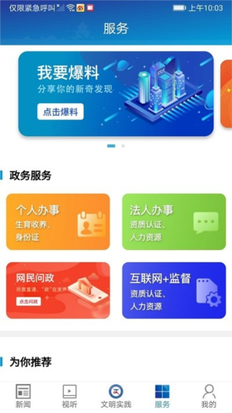 1、可以直接通过本软件进行政务办理以及报纸阅读;