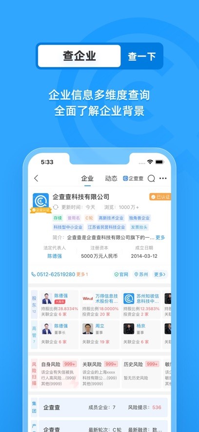 企查查企业信息查询app是一款专业的企业征信查询软件,通过企查查企业信息查询安卓版随时随地掌握企业信用情况!是企业征信查询神器,全国8000多万家企业信息任你挑选。