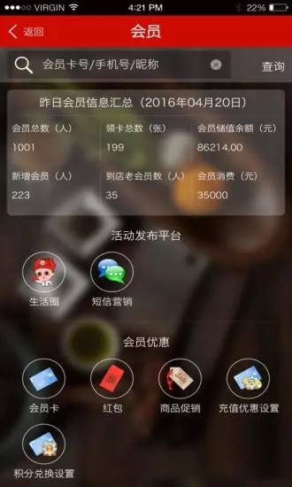 3.【扫码核销会员】顾客扫描会员卡上的二维码即可对会员信息进行核销查询及充值修改绑定关系(微信或QQ)。