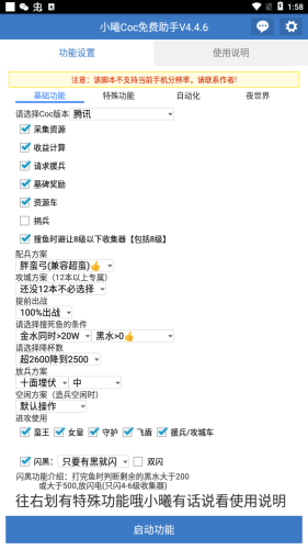 小克斯Coc免费辅助是款非常实用的游戏辅助工具,支持多个不同版本和型号的手机使用,运行稳定不会封号无风险!一键开启即可享受便捷的服务体验。操作简单易上手适合各种水平的朋友进行选择哦!欢迎下载!