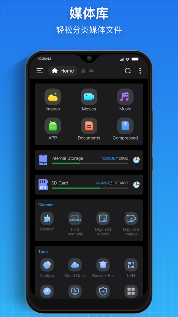 超级存储是一款非常强大的文件浏览工具,该工具可快速地对您设备上的任何文件进行分类;