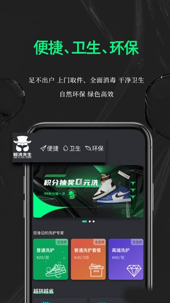 1、打开鲸洗夫APP,点击首页【洗鞋盒】进入洗潮流商城。