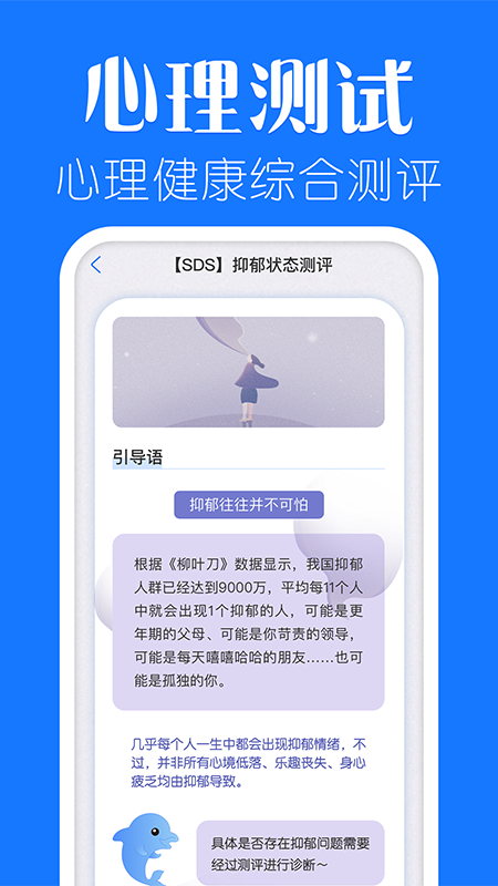 海豚心理是款简单方便的手机线上心理咨询服务软件,开启之后我们可以快速找到自己需要的内容。通过点击和下载用户们就能轻松获取到超多解答体验并进行了解学习使用。喜欢的朋友不妨速速下载吧
