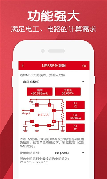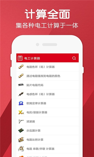 一款专业的专业电子电工计算神器,汇聚了海量电工公式和计算数据、功率功率、电机转速计算等多种不同种类的电阻转换参数查询与统计分析服务;能够满足电气电工们日常工作需求以及对电工常用公式及公式的使用需要,