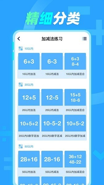 支持各种复杂的加减运算题目使用,可以自由的选择自己需要的难度等级来完成自己的数理化任务;