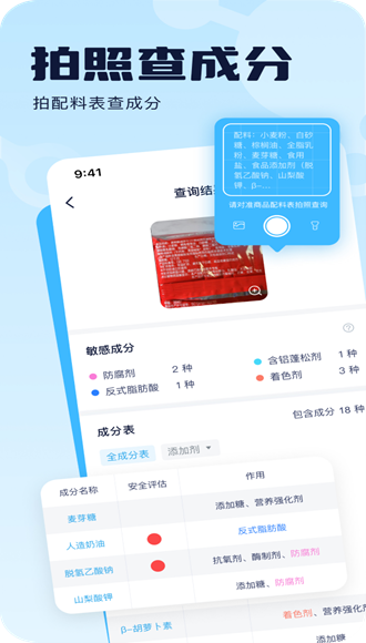 【防伪查询】通过扫描条形码/二维码就可以查询化妆品真假面值,并且还提供了详细的成分说明(含酒水、脂肪)、功效、作用、用途、用药、营养等资料,是你日常必备的护肤助手。