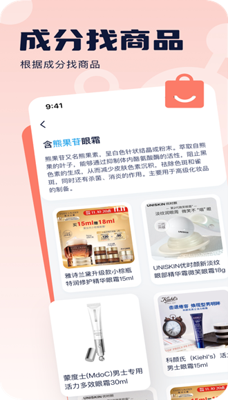 1、实时更新最新美肤资讯;2、支持多种搜索方式快速定位到想吃的化妆品;3、【权威】化妆品数据库,覆盖主流化妆品品牌;,教你科学选购优质美妆。5、专业团队在线为你提供全面护肤知识与技巧服务;6、随时随地收藏喜爱的护肤产品或咨询达人分享经验。7、“发现”板块让你轻松找到自己想要的产品和服务。8、在首页即可直接浏览热门榜单推荐,更有各种专题活动福利享不停。9、购物车管理模式全新改版,新增批量支付的功能,让您省心放心买买买。10、强大的搜索功能助你轻轻松松就能精准筛选出你所需的产品并享受优惠的价格。11、全新的分类页面为用户呈现更加详细的内容类目了如指掌,清晰明了一手掌握。12、贴心的个人中心可将自己的收货地址以图片形式显示给好友共同观看更容易理解的使用感受。13、实用工具箱包含护眼、穿搭建议、健康食谱、美食菜系等多方面的精选生活小妙招......