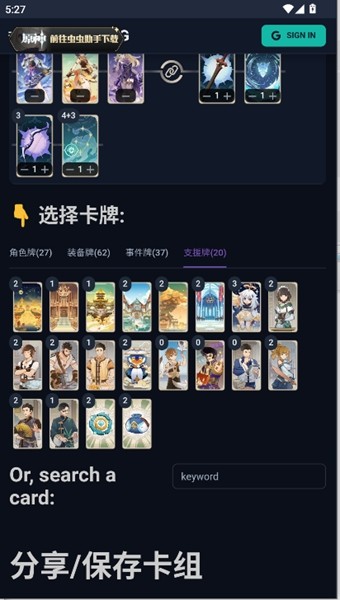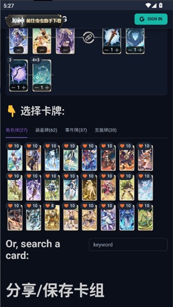 原神七圣召唤卡组模拟器app是一款原石游戏制作工具,可以自定义各种角色和道具的设置。玩家们可以在这款软件中对自己原地中的怪物进行修改操作哦。并且还可以使用它来创建你的冒险世界,在这里你可以自由的选择游戏中的人物和装备等参数!快来下载体验吧!