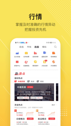 •行情:沪市指数、资金流向、公告、研报、财务统计等基本面信息一键掌握。