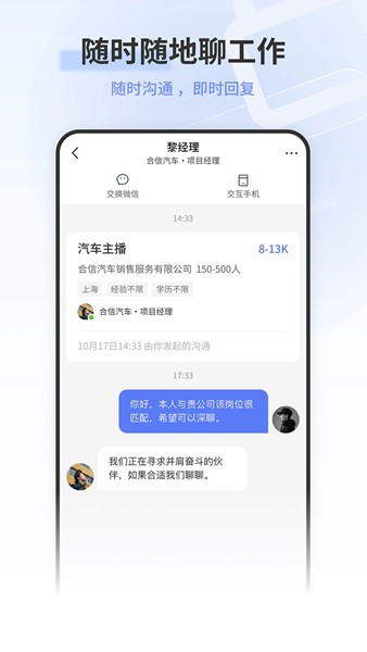 通过这款软件随时随地与老板交流沟通问题并找到合适的工作机会。