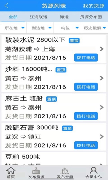 船货通app,专为船舶运输行业人员打造的在线物流信息查询服务软件。平台提供最新船舶动态、航运行情和交易数据等内容;用户可以在这里了解各种船源情况及相关资讯!