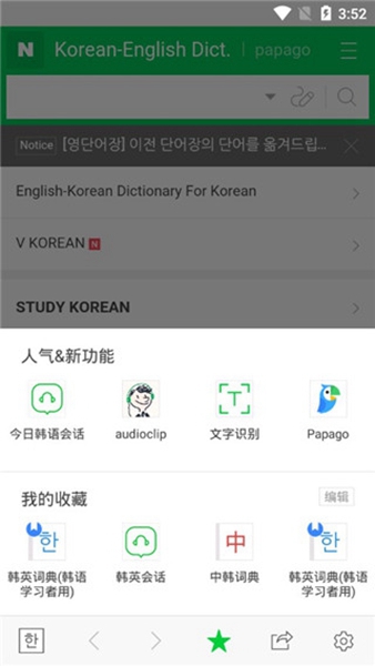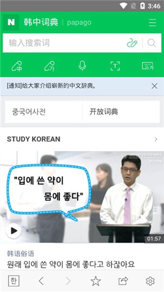 naver词典是款简单好用的手机韩语翻译软件,通过开启我们可以快速进行韩语学习和体验。在这里用户们可以通过简单的操作获取到韩语相关知识内容并点击下载使用。喜欢这类工具的朋友不妨速速下载体验吧!