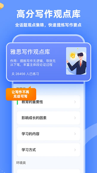 从雅思口语听力阅读到雅思阅读写作范文,羊鱼雅思app旨在为用户提供一站式的雅思训练解决方案,确保每一位用户的每一次练习都是充满挑战性和成就感的。