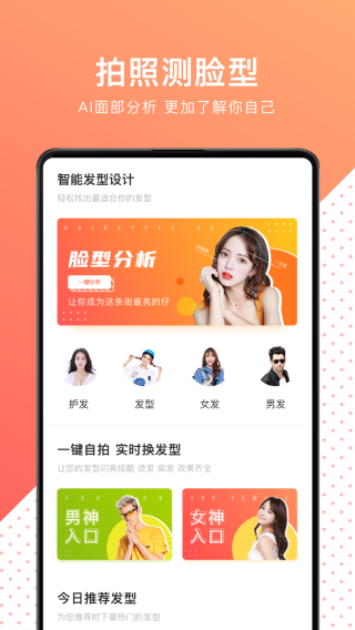 换发型测脸型测试模拟发型应用app是一款非常实用的拍照软件,该软件可以帮助用户轻松解决发型问题。同时还可以根据用户的脸型、脸部特征智能匹配出合适的发型和发色供用户选择更换使用,而且还有超多趣味玩法等你来体验哦!