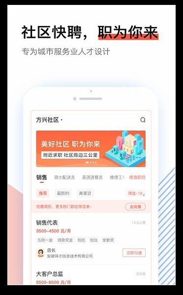 社区快聘是新安市本地企业专属APP,专注于新安市本地企业招聘信息发布的网站,为用户提供最新最全面的职位。通过本应用即可随时随地与老板直接沟通;还可以根据自己需求选择合适的工作类型哦!