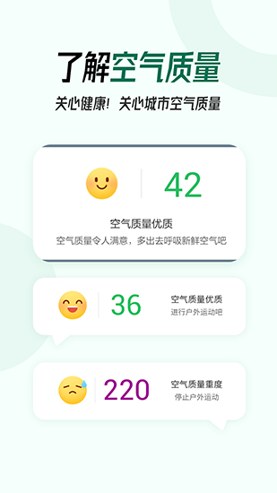 3、空气质量监测:提供详细空气质量指数展示以及空气污染趋势图表分析服务,助您更好地了解自身健康状况。