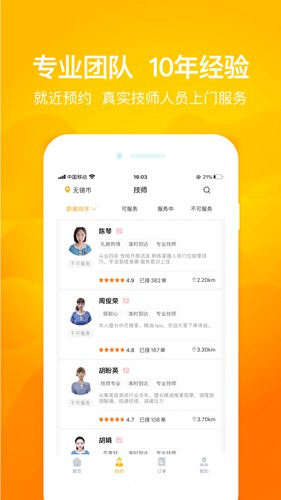 1、在线就可以随时随地找技师下单了,而且还可以看到很多的订单详情哦。