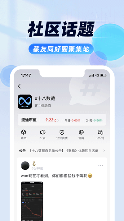 该软件还允许用户创建个人收藏列表中的所有藏品以及动态信息展示在用户面前;