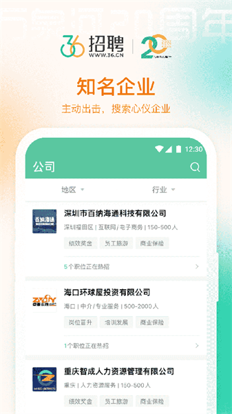 36招聘职业app是一款专注于企业招聘、求职服务的手机应用程序。在这里你可以搜索到各种优质的工作岗位和公司的信息资料哦!你也可以发布自己的简历哟!